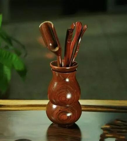 茶道组是茶盘上最常用到、也最容易被忽略的物件,比如说茶漏,用盖碗或是壶泡茶都要用它来过滤茶渣;用来夹闻香杯和茶盏的茶镊,有木的、竹的、金属的;还有用来放品茗杯的茶垫,用来疏通壶口的茶签,以及茶勺和茶刮。所有这些,平时散放在茶盘上,专心喝茶的你可能不会去注意,分开来它们只是茶盘上的杂件,放在茶道瓶中,就成为茶道组了。这些茶漏、茶镊、茶垫等因为其使用功能的限制,其形状大都大同小异,就是材质、工艺上有所不同。
