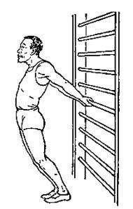 三是拱:即拱腰锻炼。双手扶墙壁或其它物,身体与被扶物要有适当距离。双脚叉开与肩同宽,先稍用力以中等速度向前拱腰向后拱腰,做完前后方向的拱腰为一次,每日做两次,每次做36下。