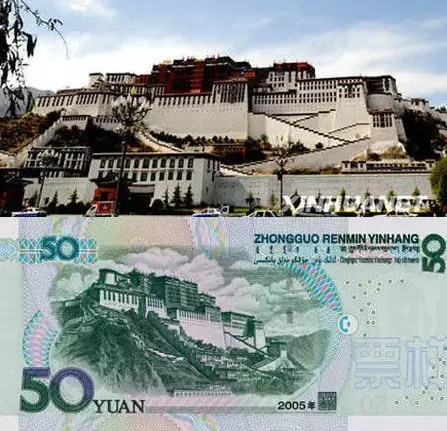 布达拉宫建立在拉萨河谷中的红山之上,宫殿依山而建,巍峨壮观。为了制作第五套人民币50元券的布达拉宫,上海印钞造币厂的两位高级美工来到拉萨考察。他们寻找很久,最终在一个水厂的厂房顶上找到“最佳角度”。他们先在这里拍照片、画素描图,经过反复修改和雕琢,最终设计出人民币上的图案