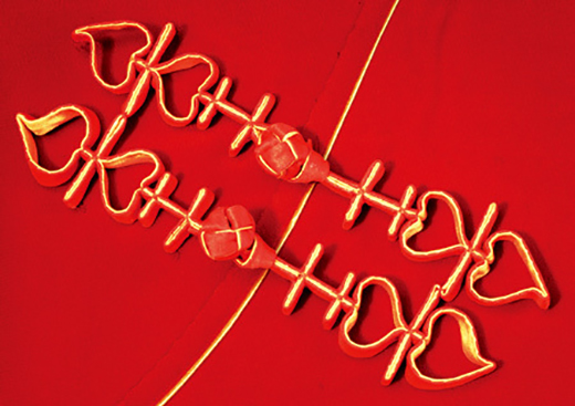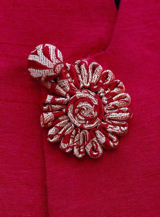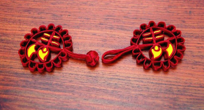 盘扣,也称为盘纽,是随着满族服饰而兴起的,可称得上是中国传统的一个符号。我国古代用长长的衣带来束缚宽松的衣服,元明以后,渐渐用盘扣来连接衣襟,用布条盘织成各种花样,称为盘花。盘花的题材都选取具有浓郁民族情趣和吉祥意义的图案。