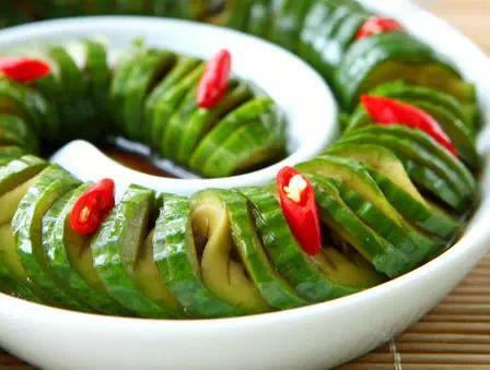将黄瓜洗净,切开,把籽去掉,晾至半干,然后浸泡在白糖、醋和盐调成的溶液中,密封15天可。
