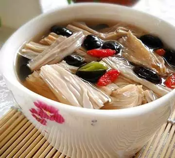 食材:黑豆100g、腐竹50g、黄冰糖75g、枸杞子适量
