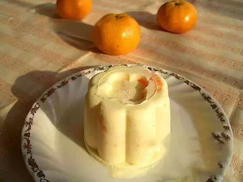 4.把橘子果肉和打发的奶油加到蛋乳冻中拌均匀。