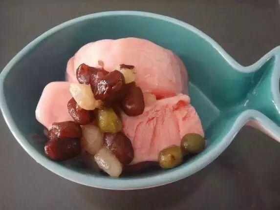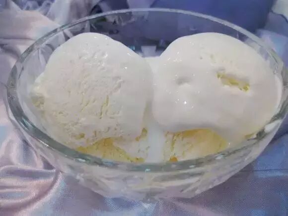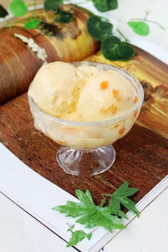 9.将冰激凌糊倒入盒中,放入冰箱冷冻,然后大约每隔1小时,取出搅拌一次,至完全冷冻凝固,食用前,把冰激凌取出,稍微融化的冰激凌口感最好