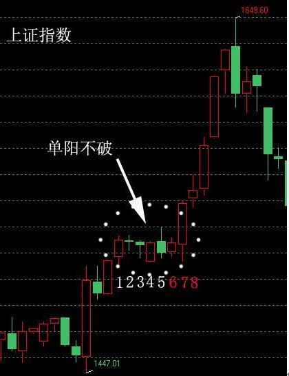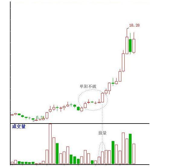 如果你希望今天刚买入的股票,明天就会快速拉升,那么你就有必要了解“单阳不破”K线形态,它能有助于你更高概率的选中这类股票。“单阳不破”是笔者在2000年推出的形态分析方攻意图在于如何最快速的发现次日就要拉升的股票,现在已经广泛用于各种周期上的趋势分析,比如分时、日线、周线、月线,年线走势等。