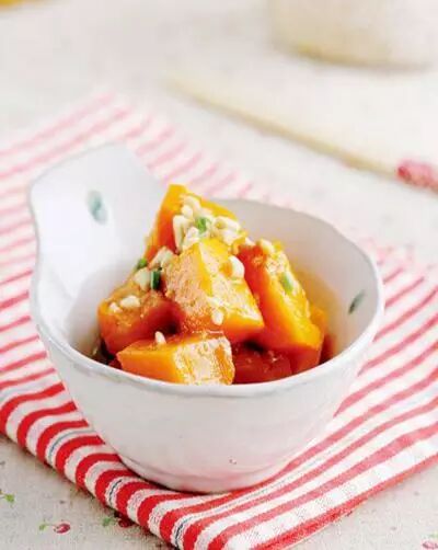 原料:南瓜150g、蒜3瓣、蚝油1大勺、盐少许、鸡精少许。