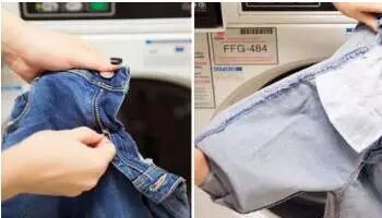 很多时候大家会忘记在洗衣服之前将纽扣、拉链或者挂钩等配件都系好。如果挂钩勾住了蕾丝衣物那后果可就不堪设想了。针对牛仔裤,切记要反面洗涤,且有的牛仔裤还不可以机洗,记得看水洗标哦。