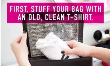 这可是个大忌,同样会导致包包变形。那么用一个洗干净的旧T恤折好放到包包里,然后用防尘袋装起来就好了。有的人曾经尝试报纸,但是如果碰到浅色内衬的包包可不能如此,印字的油墨可不听你的话。