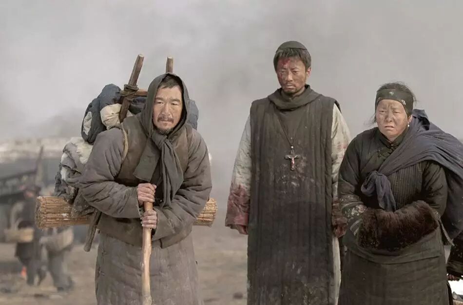 走到半路,老六碰到饿得只剩一口气的父子二人,父亲背上也背着一个很重的袋子。