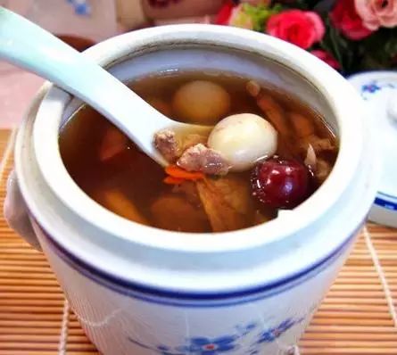 食材:鹌鹑蛋10个、当归7片、瘦肉60g、党参适量、黄芪适量、红枣7个、枸杞1把、盐少许、姜适量、矿泉水适量