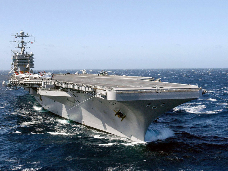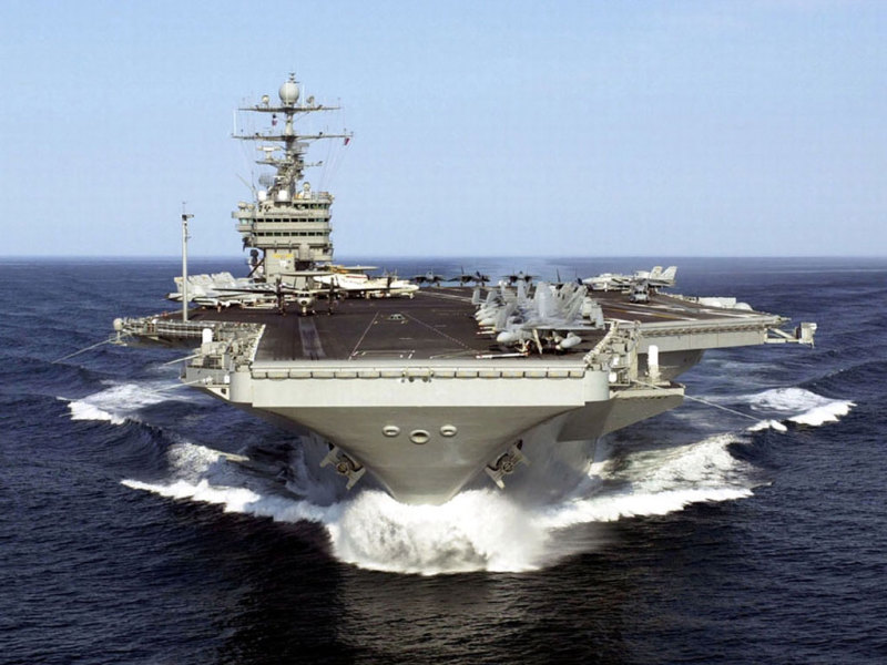 “尼米兹”级航母是当今世界海军威力最大的海上巨无霸,先后共有10艘。“尼米兹”级航母中,最具代表性的当属“斯坦尼斯”号,它全长317米,宽40.8米,飞行甲板面积超过3个足球场,舰内从机库甲板以上分为9层。整个舰从龙骨到桅顶高为76米,相当于20层高楼。“斯坦尼斯”号作战能力惊人,其舰载机所能控制的空域和海域可达上千公里,自身一昼夜机动也有500海里。舰载机可24小时进行战斗巡逻,每天可出动200多架次飞机。