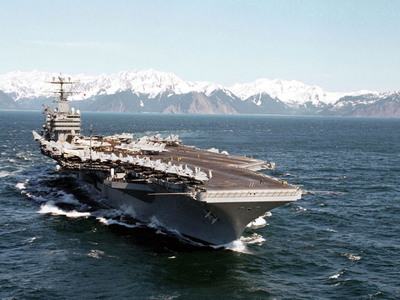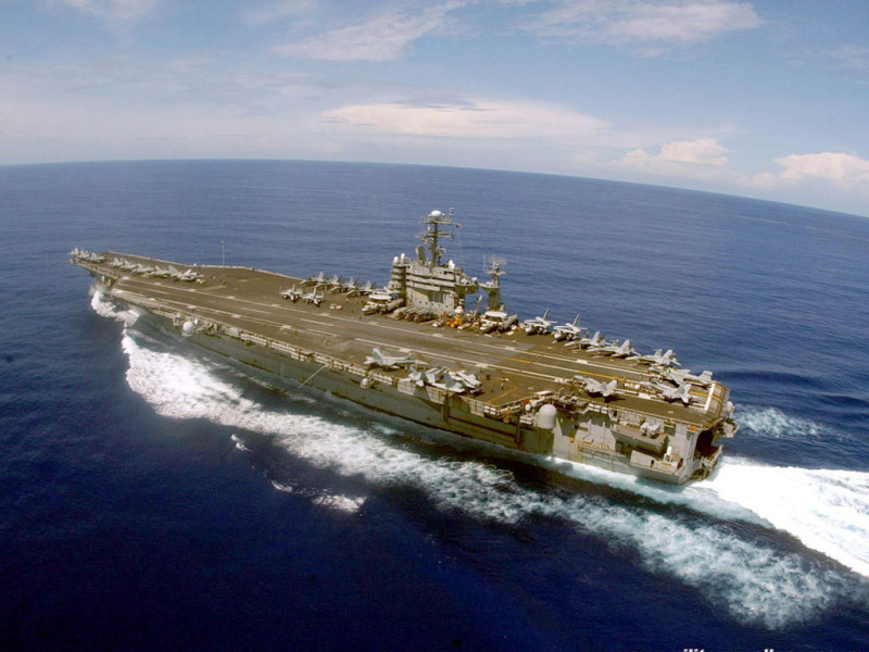 “乔治·华盛顿”号是世界上吨位最大的航母之一,也是此次韩美军演中即将亮相的航母。该航母的甲板面积是足球场的3倍,船舱有3300多间,可容纳6250多名船员。舰上可搭载90多架F-18“大黄蜂”战斗机、超级大黄蜂战斗机、E-2C预警机以及直升机。作为首个在美国本土以外常驻的美国核动力航母,自2008年进驻日本横须贺后,“乔治·华盛顿”号一直处于战备值班状态,负责整个东亚地区的巡航,定期参加区域军事演习,以检验战斗能力。