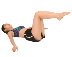 保持仰卧姿势,双手抱紧膝盖,大腿向腹部曲伸,并抬起上半身再轻轻躺下。重复此动作5—10次。