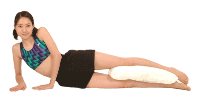 身体侧卧,运用腿肚力量夹住靠垫。双手撑地以保持身体平衡。抬起头部,眼睛直视前方。调整呼吸,双腿夹住靠垫并向上抬起,动作要慢才能达到理想的瘦身效果。10次动作为一组,重复10组。