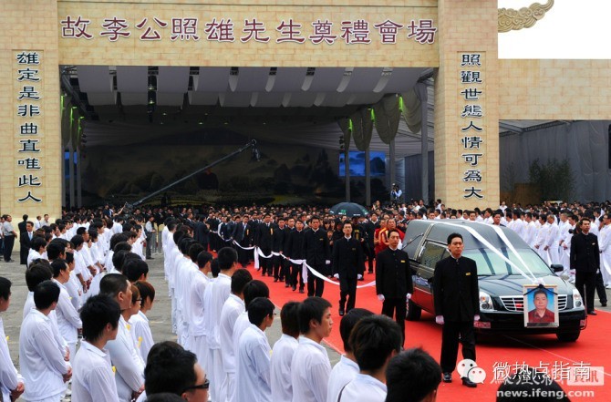 李照雄告别式会场占地165000平方米,逾20000人致祭,场面盛大,灵车在众人送行下,缓缓驶出会场。