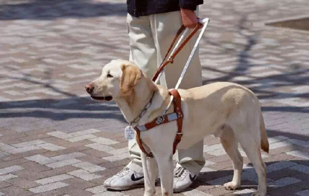 渐行渐近,只见年轻男子高大魁梧,腰板挺直。紧贴着他的德国导盲犬配有专业的拉杆——这是导盲犬的标准装备。哦,是一位盲人。男子徐徐走向车站,在候车队伍的不远处停了下来。