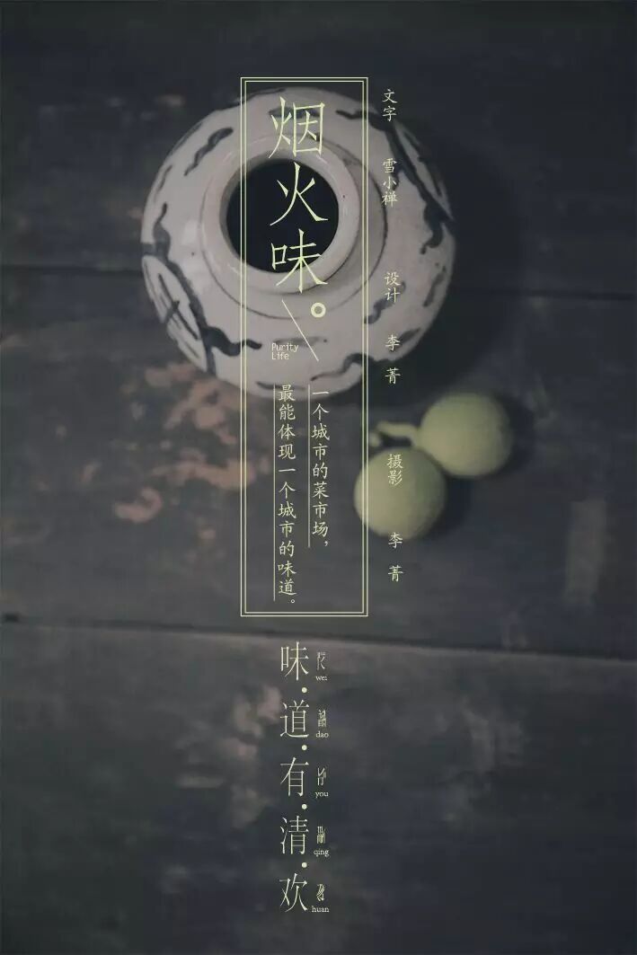 清冽气 Chilly Flavour我喜欢下过雨的味道,有一种新鲜和清洁。菜市场是每个城市最有生活气息的地方,张爱玲说,“看不到田园里的茄子,到菜场上去看看也好——那么复杂的、油润的紫色,新鲜的豌豆,熟艳的辣椒,金黄的面筋,像太阳里的肥皂泡。”