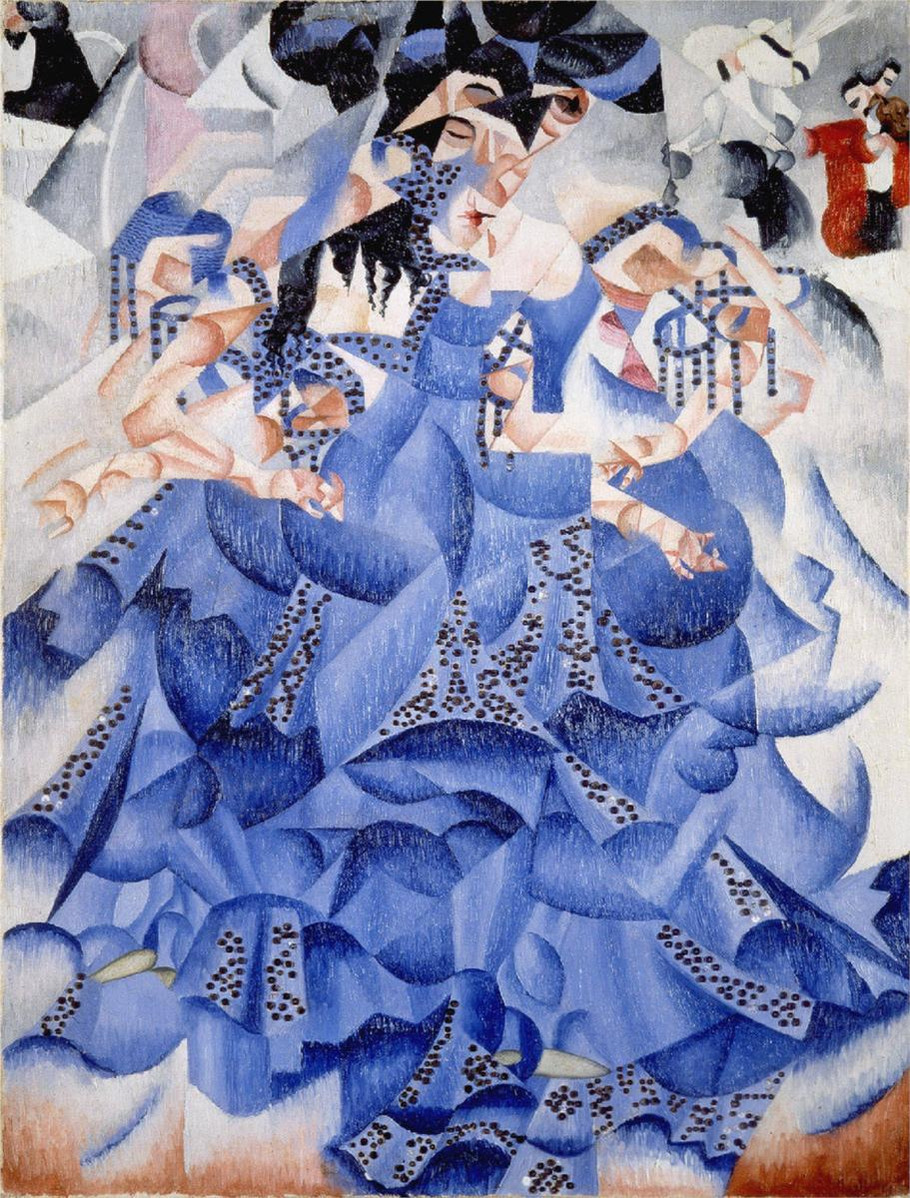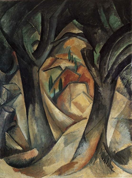 后印象主义代表人物塞尚是第一个把具象带往抽象形式的画家,他的“把自然还原为圆柱、圆锥与球体的三种基本形状”认识,催生了立体派的诞生。1908年崛起的以布拉克和毕加索为代表的立体派绘画继承了塞尚的造形法则,将自然物象分解成几何块面,从而从根本上挣脱传统绘画的视觉规律和空间概念,然而“抽象”艺术在毕加索看来并不存在,他认为只不过有人强调风格,有人强调生活罢了。立体主义产生后,在上世纪20年代还相继出现了未来主义、构成主义、绝对主义、新造型主义等立体派分支,其中1909年在意大利出现的未来主义美术运动,利用立体主义分解物体的方法,加上表现速度、时间和力量的因素,以体现“速度美”,代表人物有波丘尼、巴拉、塞韦里尼等。