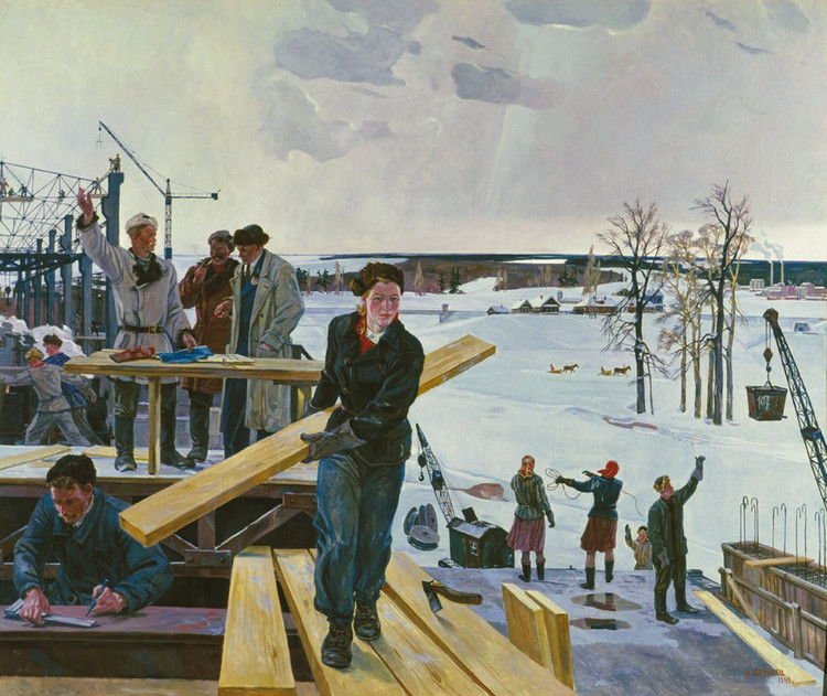 1922年,以里维拉、奥罗兹科和西凯罗斯为代表的墨西哥壁画运动,宣布断绝与一切贵族艺术关系,创造具有社会目的的、纪念碑般表现形式的新艺术,这股风潮席卷美洲形成社会现实主义画派,并在经济大萧条时期达到高峰。与此类似的是,前苏联继承了19世纪批判现实主义风格,在30年代兴起的社会主义现实主义,也是反映社会现实、为政治服务的艺术,并自成体系,对社会主义国家及现代中国产生了巨大影响。这也是俄罗斯民族在具象和抽象(抽象派创始人康定斯基)两个绘画领域对人类作出的贡献。社会主义现实主义代表画家有Alexander Deineka, Alexander Gerassimov和Isaak Brodsky.