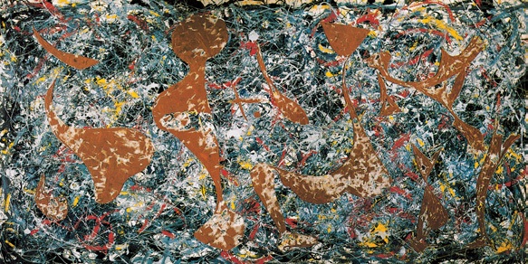 在1913年的军械库画展(The Armory Show)和第一次世界大战后移民到美国的欧洲艺术家,将现代艺术介绍到了美国。第二次世界大战结束以后,美国逐步取代巴黎成为新兴艺术运动的中心。以波洛克、德·库宁为代表的抽象表现主义绘画,综合了抽象主义、表现主义的特点,在注重形的同时突出感情和色彩。波洛克在此基础上抛弃传统绘画工具,首创行动绘画“滴洒法”(类似泼墨,他也是笔者发现的第二位绘画中带有中国元素的西方大师,另一位是克林姆特),这种自由奔放、无定形的抽象画风格,被视为摆脱欧洲影响的美国抽象艺术时代的开始,成了反对束缚、崇尚自由的美国精神的体现,与达达主义代表杜尚的理念一脉相承。