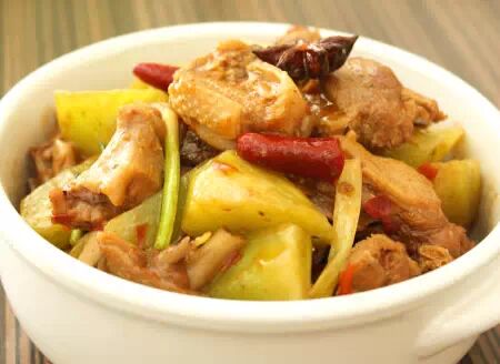 配料:生姜、大蒜、葱、八角、桂皮、花椒、干辣椒、老抽、白糖、鸡精、料酒各适量。