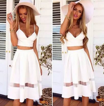 裙摆呈喇叭状的,这样的选择可以帮你拉长你的下半身,尽量选择材质比较软、薄之类的。像下边这款就会显得过于厚重,以至于身高更矮!