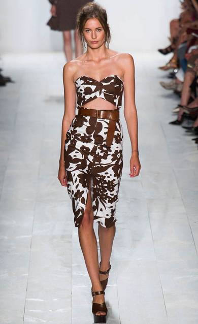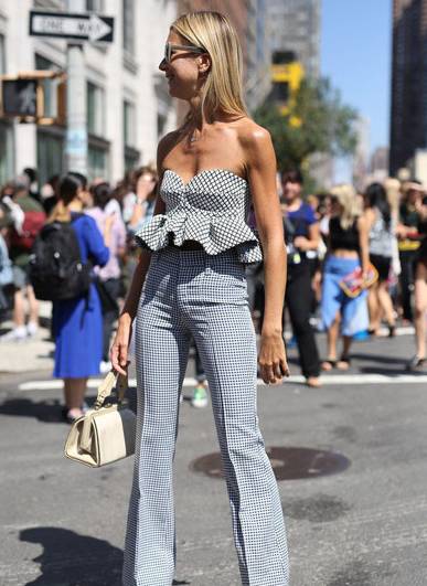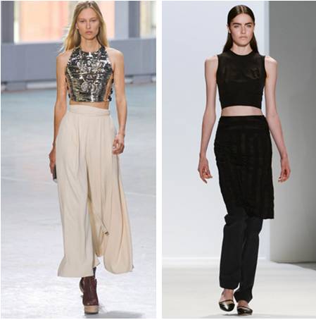 如果你觉得抹胸款太过于暴露,那可以考虑试试下边的!短款上衣搭配高腰裤,只露出短短一截腰线。左边这款是Proenza Schouler的设计,性感不需要露那么多,这么一点就足够了!右边的是Richard Chai的2014春季时装,简约黑色,摩登优雅!