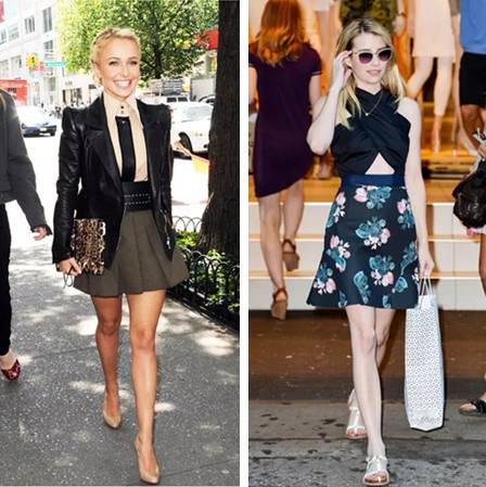不论是左边这款自然的高腰设计还是右边这种用腰带设计,短裙都完美的再现了身材!