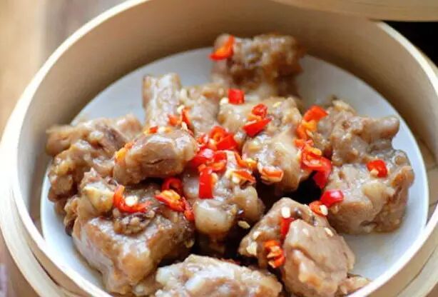 4、入锅蒸,上汽后蒸30-40分钟,排骨最好铺平蒸,不要有重叠,这样不容易熟透。