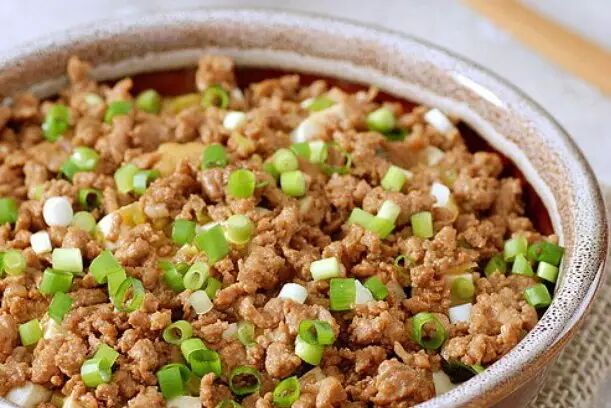 2、肉泥可选用颈背肉,也可加少许五花肉泥。可根据自己的口味儿来炒,加辣椒,或者别的都好吃。