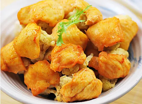 1、鸡胸肉改刀成4-5公分大小的片,用奥尔良腌肉料腌制1个小时