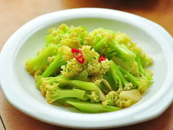 1、烧一锅开水,水开后加少许盐将菜花焯水1分钟