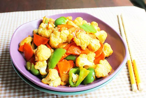 菜花半个 柿子椒1个 胡萝卜半根 蒜适量 食盐 1小勺老抽 1小勺 蚝油1大勺 花生油适量