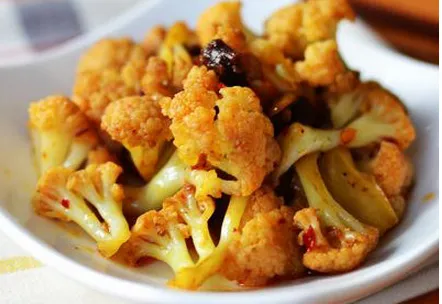 1、菜花用清水加小苏打浸泡10分钟以去除农药,然后冲洗,沥干,从菜花的根部下刀,把菜花切成小朵