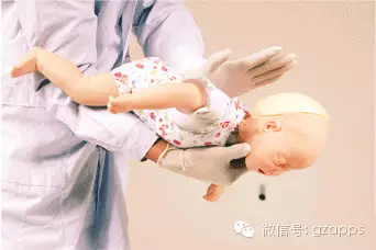 救护人应该马上把孩子抱起来,一只手捏住孩子颧骨两侧,手臂贴着孩子的前胸,另一只手托住孩子后颈部,让其脸朝下,趴在救护人膝盖上。在孩子背上拍1-5次,并观察孩子是否将异物吐出。