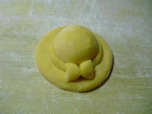 6.一小块面压扁用筷子夹出蝴蝶结形状,压在面条的连接处。