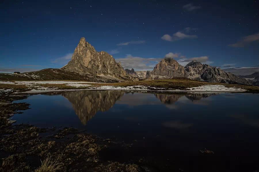 满月和北斗七星照耀下的山峰如同奥林匹斯般庄严瞩目。