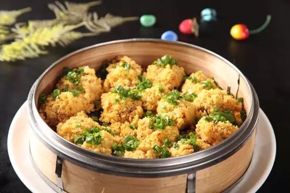 7、再倒入小米排骨,上笼蒸40分钟左右即可。