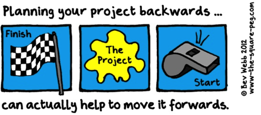 这个方法是从最终的目标倒推你下一步的行动。首先脑子里要构思好最终目标。想想为了完成目标你需要做些什么。如此这般直到发现你已经达到的程度或者马上就能达到的状态——这就是你下一步需要做的。