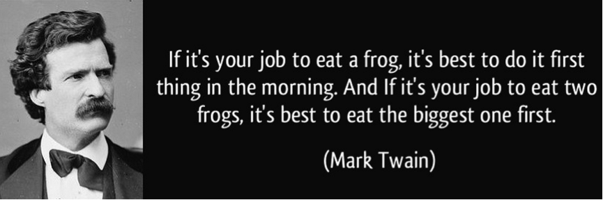 先把最不想干的事情做了。英语里有个说法就是说如果你一早起来先吞了最不想吞的青蛙,那么你会觉得接下来发生的什么事情都不在话下。