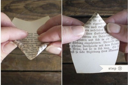 把皱纹纸对折再对折 用剪刀剪出上图所示花瓣形状