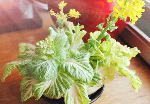 工作太忙,错过了菜籽开花的春季美景?没关系,切下来要丢的大白菜头,就可以让你在家欣赏金色的菜花。