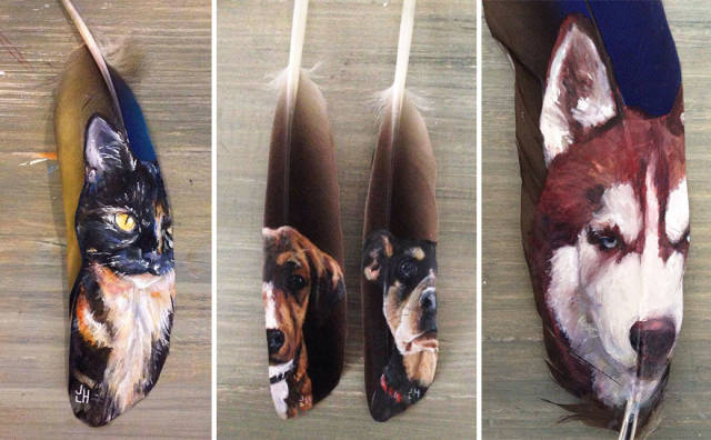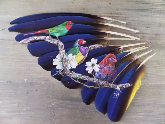 谁能想到羽毛和颜料的碰撞竟带来了如此让人惊喜的效果,画作细腻精致,富有一种特别的质感,赶快来品赏一番吧~