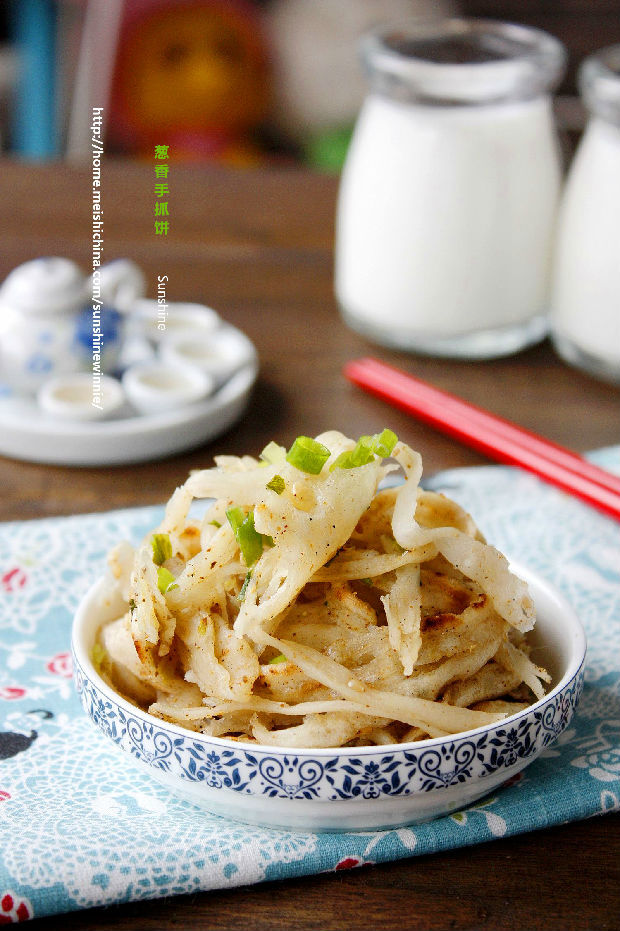 中国人的早餐品种非常丰富,不同省市之间喜欢的早餐差距也蛮大的,比如说武汉的热干面,襄阳的牛肉面,成都的肥肠粉,绵阳的米粉,重庆的小面等等,但也有比较传统的通用早餐,比如说油条、馒头、花卷、包子等等,喝的一般就是豆浆、牛奶,今天这些都不吃了,试试手抓饼吧,做的时候就葱香四溢,吃的时候再配上牛奶或豆浆,美味营养的早餐就这样炼成了。