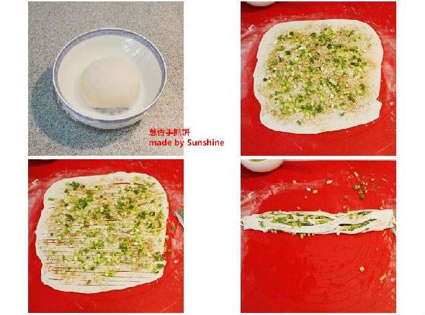 配料:小葱、芝麻油、盐、花椒粉、五香粉、芝麻
