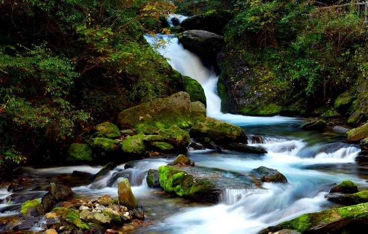 10余公里长的深山峡谷,鬼斧神工般地锻造出白马潭、黑龙潭、虎啸潭等十八潭美景。潭水或飞流直下,形成瀑布;或拍石打岸,聚流成潭。