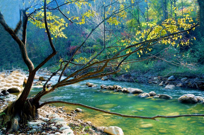 香溪水冬暖夏凉,天气晴朗的时候,溪水会呈现碧绿、碧蓝的颜色。