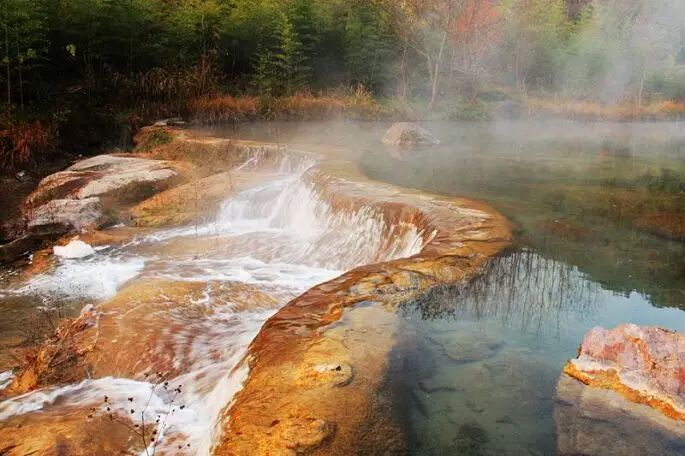 五龙河也有“中国小九寨”之称。这里水质清澈、晶莹剔透,潭瀑相连,是当之无愧的休闲度假圣地。