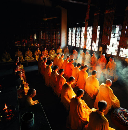 流浪汉默默离开了寺庙……