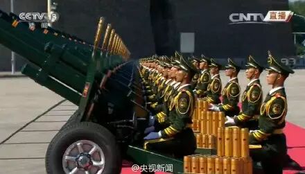 纪念大会开始!现场鸣响礼炮70响,铭记抗战胜利70年。